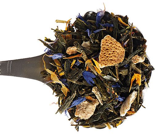 Thé vert parfumé à l’arôme naturel de bergamote, écorces de citron, pétales de bleuet, pétales de souci, carthame, arôme naturel de bergamote.